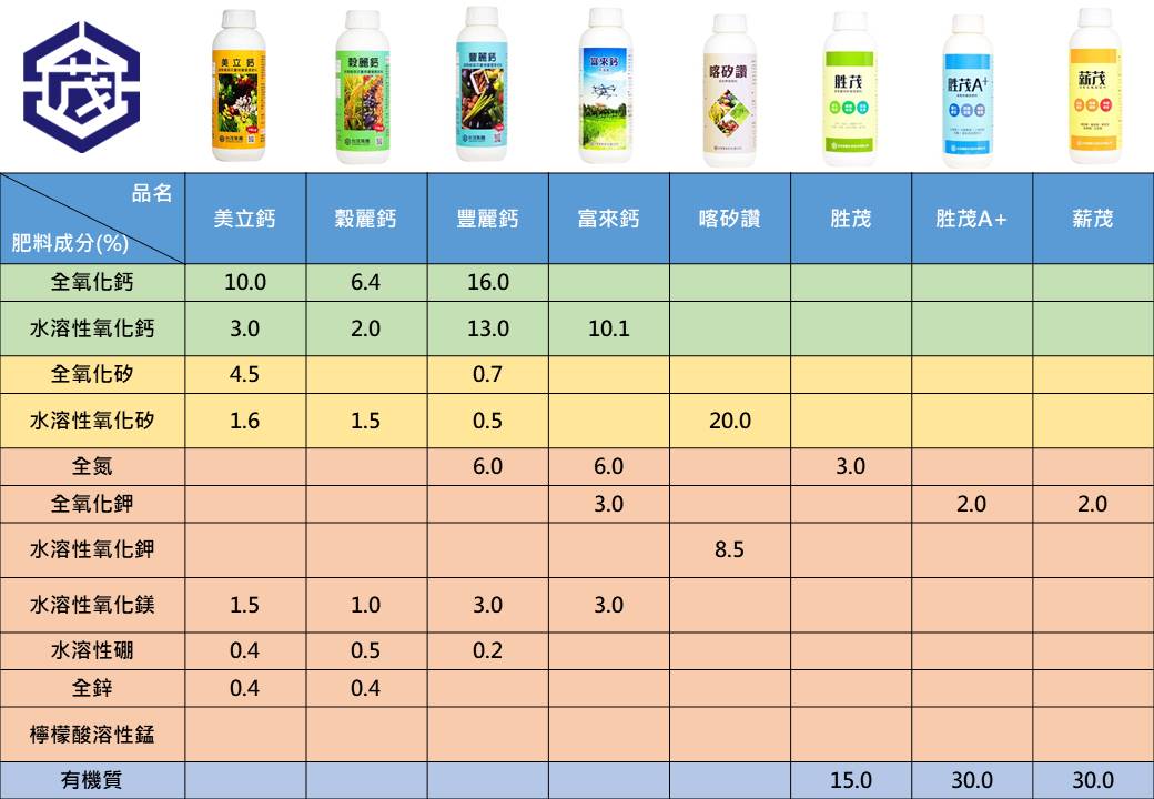 台茂寬騰液體肥料成分總表
