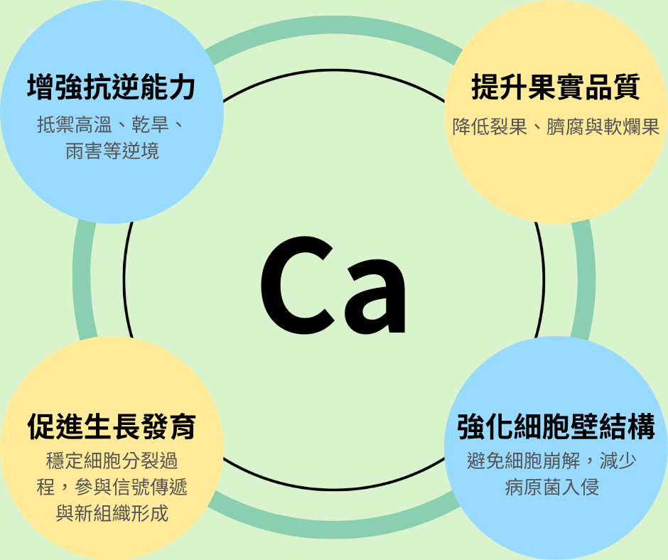- 提升果實品質:降低裂果、臍腐與軟爛果的發生率。
