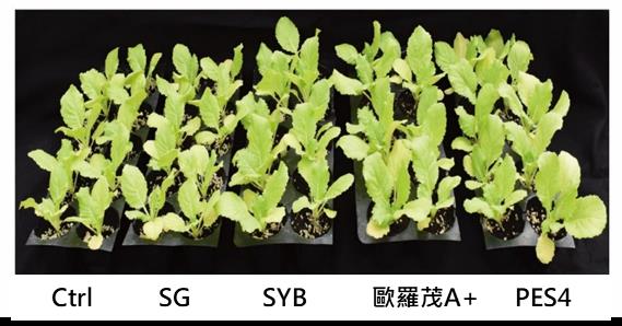 白菜幼苗每週澆灌稀釋100倍歐羅茂A+液劑,於施用後4週後可促進白菜生長。